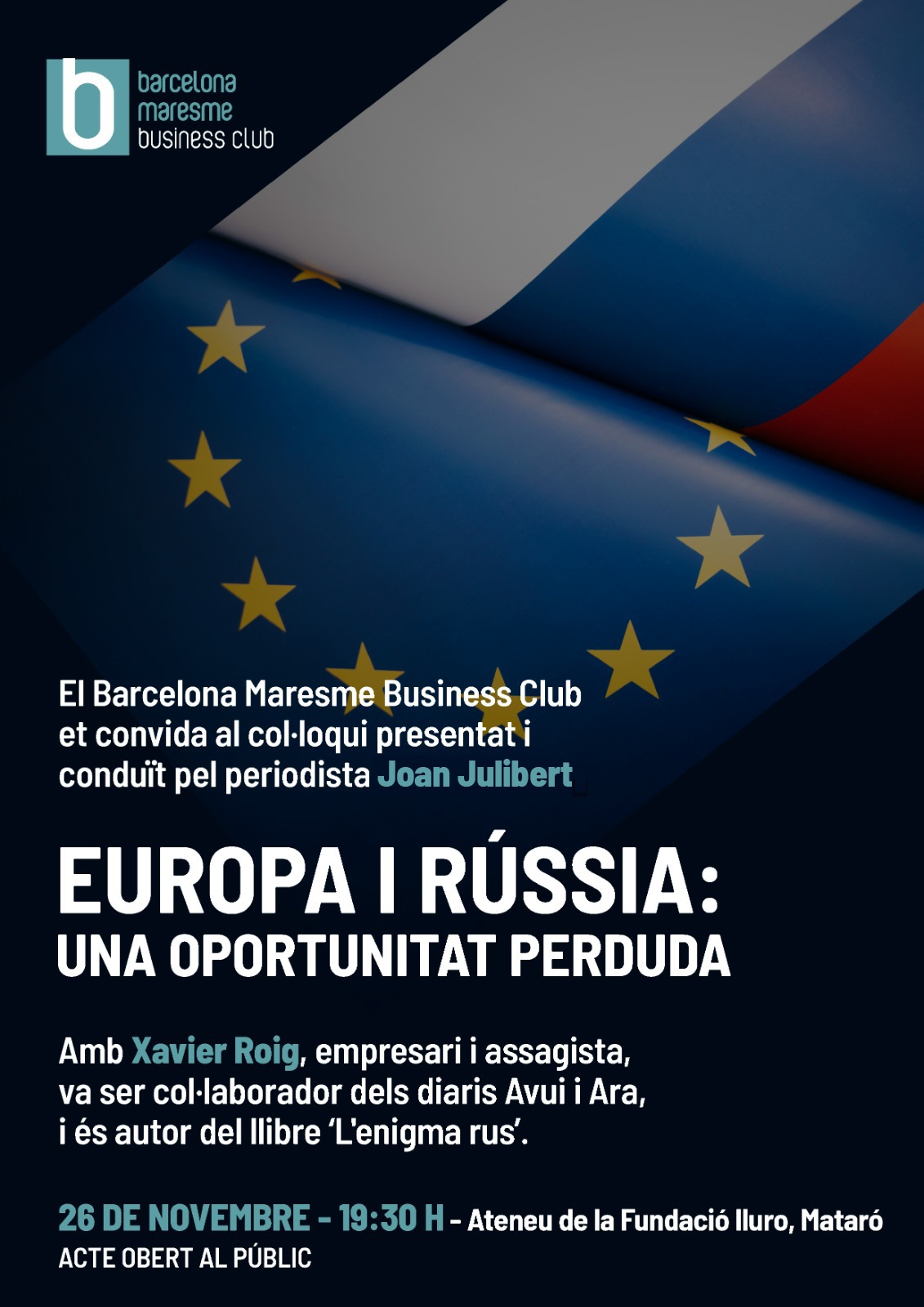 El Barcelona Maresme Business Club convida a un nou col·loqui que porta per títol “Europa i Rússia: una oportunitat perduda”, presentat i conduït pel periodista Joan Julibert.