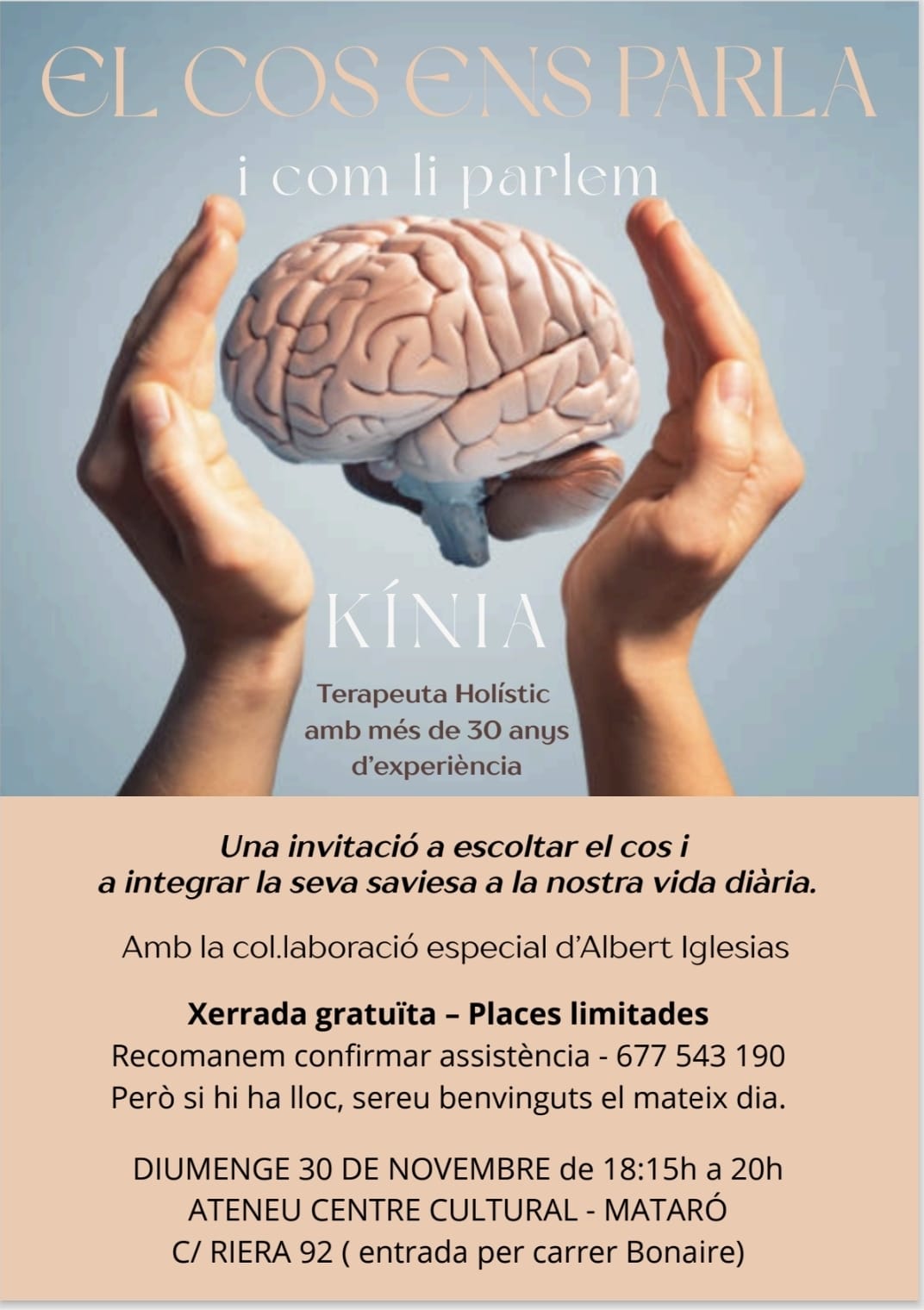 El cos, instrument, al servei de la vida En aquesta conferència, descobrirem com els símptomes físics, són missatges que el cos ens envia per avisar-nos del nostre estat emocional, mental i espiritual. Aprendrem a interpretar aquestes senyals per transformar la nostra salut i aconseguir un major benestar i equilibri interior. Una invitació a escoltar el […]