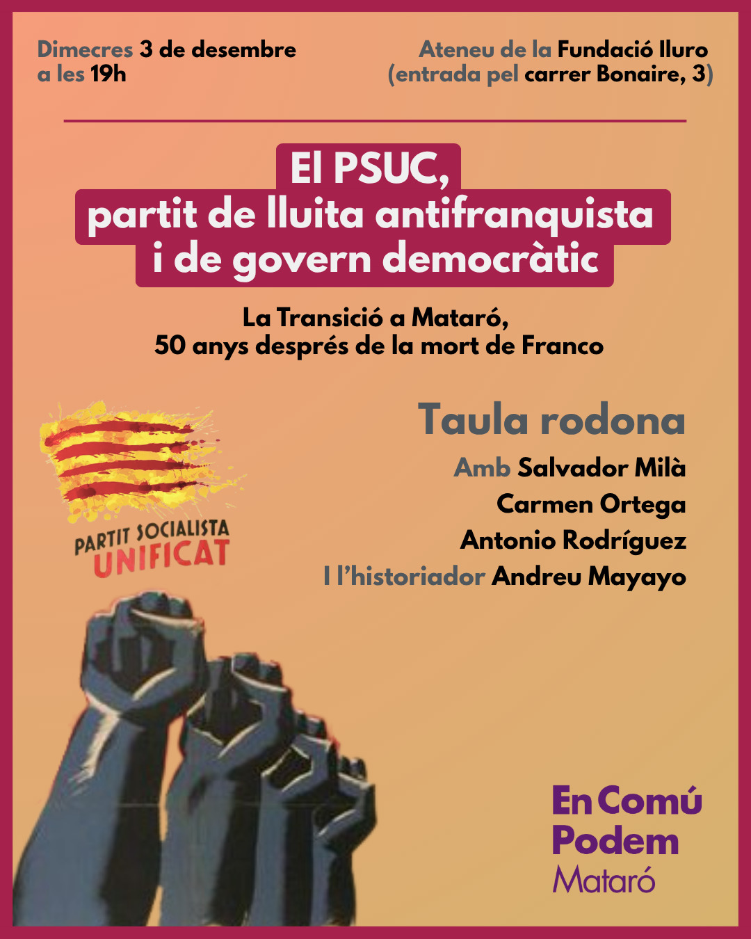 Enguany es compleix mig segle de la mort de Franco, un moment històric que va suposar un punt d’inflexió polític, social i cultural de Catalunya i de tot l’Estat. En aquest procés, el PSUC va jugar un paper protagonista. En Comú Podem ens sentim hereus d’aquells homes i dones i volem posar en valor la seva […]